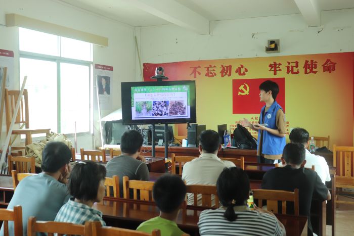 团队举办养殖技术宣讲会,公共卫生学院副教授王景鑫老师和团队成员吕羽晗担任主讲人。王老师结合当地实际情况,深入浅出地讲解稻渔综合种养技术的要领与注意事项,从预防疾病、保障食品安全的角度,阐述科学养殖的重要性。团队成员与村民积极互动,现场气氛热烈,有效提升了村民的养殖技术水平和健康养殖意识。