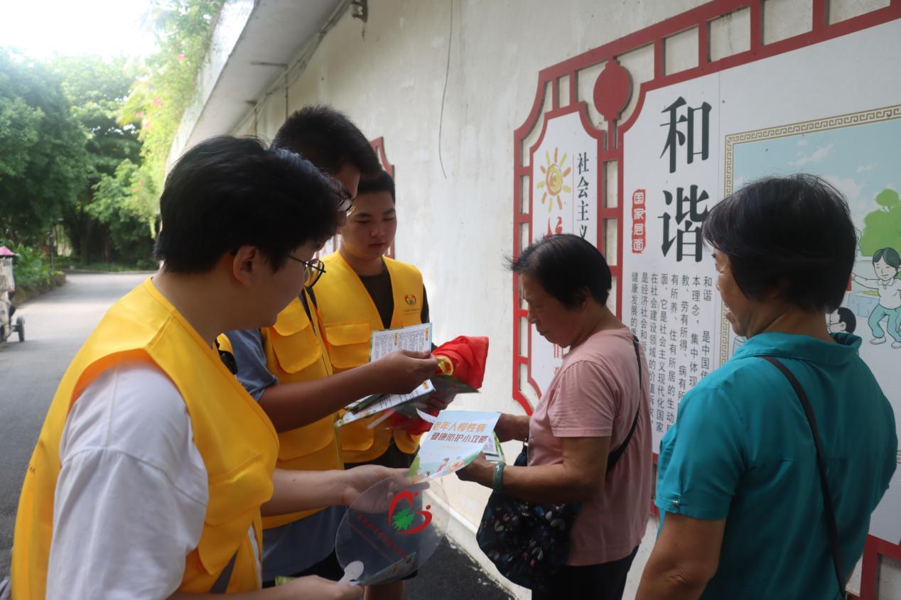广东医科大学颐康医养志愿服务队队员深知,作为青年医学生,他们肩负着传递社会正能量的使命与担当。因此,他们响应国家号召,在广东省湛江市开展宣传活动。