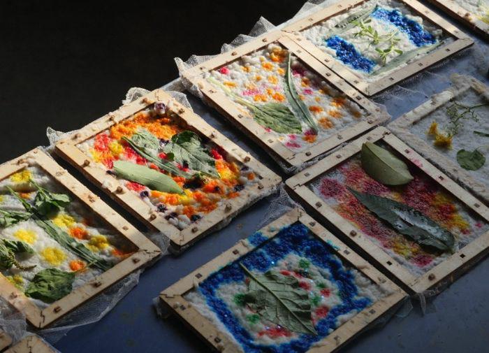 学生们先将老师事先买好的网框组装好,上面固定上细密纱网,形成标准造纸框;然后轮流用木棍搅拌水盆中的天然纸浆,加入少量白乳胶增加韧性。"要像打太极一样匀速用力"程治闽边示范边讲解,孩子们很快掌握了让纸浆均匀融合的诀窍。