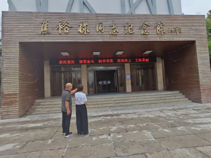 一对夫妇在焦裕禄同志纪念馆前驻足参观的场景。罗海洋摄