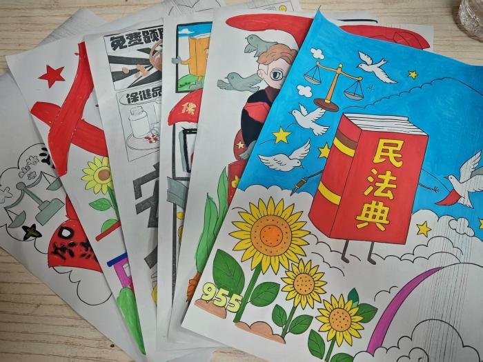 互动环节中志愿者,引导孩子们用画笔描绘校园暴力、校园安全等场景,在涂色与创作中解读《未成年人保护法》《校园欺凌防治法》等法条。
