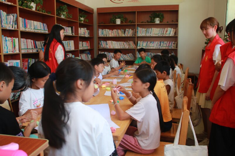 主题创作结束后,实践团特意安排了自由制作时间。孩子们卸下束缚,发挥想象随意创作,活动室里的气氛愈发轻松热烈。“爸爸妈妈在外地打工,我想把甜甜的草莓送给他们。” 一个小女孩举着用黏土制作的草莓,轻声向志愿者们诉说。这句质朴的话语,透露出留守儿童对远方父母深深的思念。实践团成员敏锐地捕捉到这一情感表达,顺势引导孩子们:“黏土就像情绪的收纳盒,大家可以把不开心捏成不同的形状,再变成喜欢的样子,这也是压力释放的方法之一哦。” 这番话让孩子们若有所思,有的把皱巴巴的黏土重新揉光滑,有的给 “哭泣的小人” 添上了微笑的嘴巴。越来越多的孩子向志愿者们主动分享心事,从学习烦恼到对父母的思念,黏土成了他们打开心扉的钥匙。