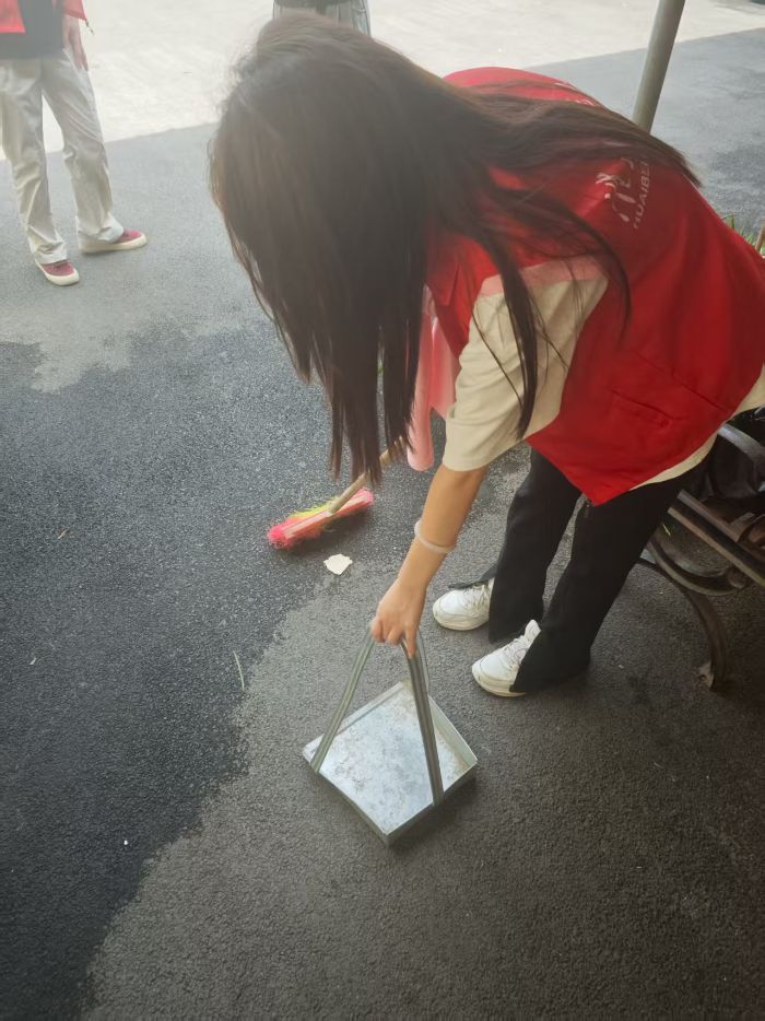 图为小组成员主动为老人到扫卫生 鲁诗敏 周小涵摄