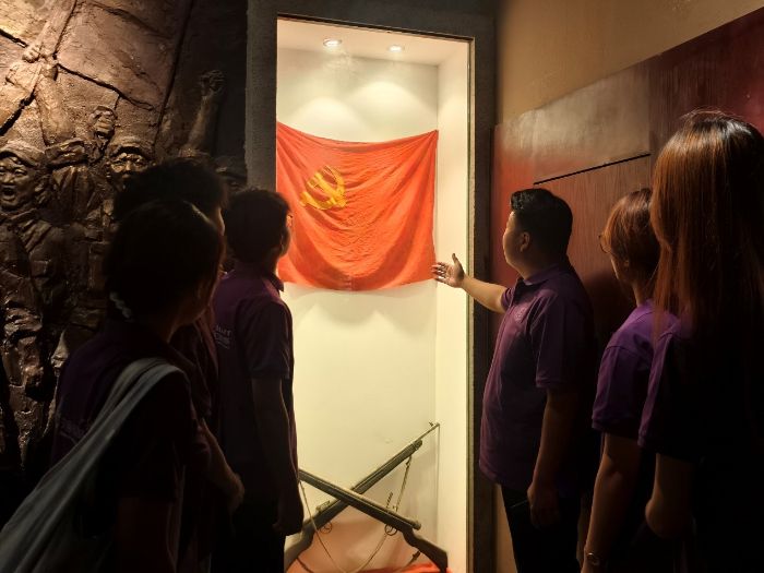 面对这座承载着烽火记忆与信仰丰碑的庄严博物馆,实践团成员们的心一下子变得滚烫而澄澈。随着脚步迈入博物馆的大门,厚重的历史气息扑面而来,实践团成员怀着肃穆的心情,一字一句地阅读展馆里的英雄事迹。那些闪光的名字、那些滚烫的誓言……每一个笔画都像仍在跳动的鼓点,敲击着实践团成员们的灵魂。