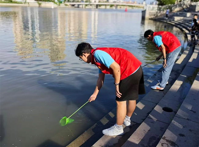 河道实践:青春护水守清波 在天津海河边,实践团成员化身“护水卫士”。手持工具清理河岸垃圾,俯身采集水样监测水质,用实际行动改善水环境。大家分工清理河岸垃圾,规范采集不同河段水样,与市民交流河道环境变化,既见证治理成效,也记录待改进问题。汗水浸湿队服,却让青春身影与清澈水波相映,以实干守护双城水脉。