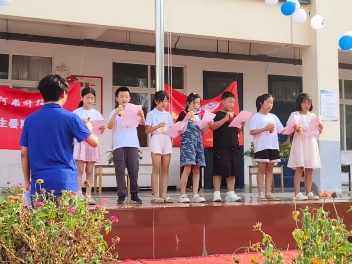 七月的阳光洒满张元小学,一场暑期素质课外拓展班结课汇演热烈开场。河南科技大学“三下乡”实践团携手孩子们,用舞台上的精彩,为这段推普筑梦的暑期时光画上圆满句点。