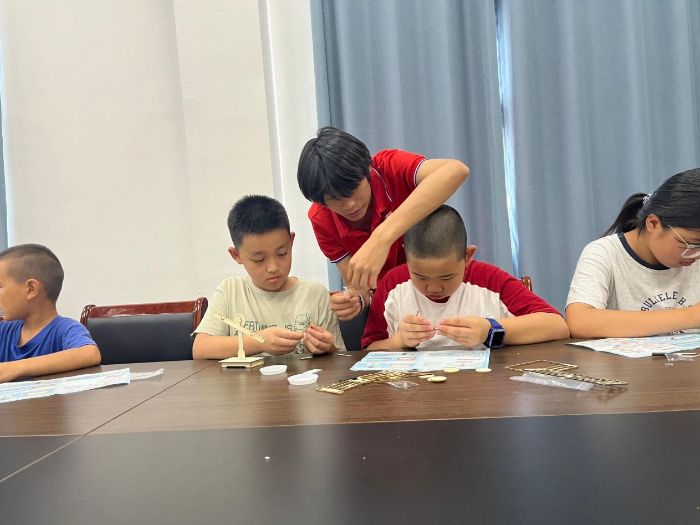 科创课堂播撒智慧火种。志愿者团队,采用“原理精讲+动手探究”的教学形式,带领孩子们从学习天平秤的构造原理到亲手制作天平秤。在制作的过程中,小朋友们不仅扎实掌握了杠杆平衡条件、重量等量关系的科学原理,更在校准平衡螺母的尝试中学会了观察,让抽象的物理知识通过“小操作”变得可感可学,创新思维在一次次动手实践中悄然生长。