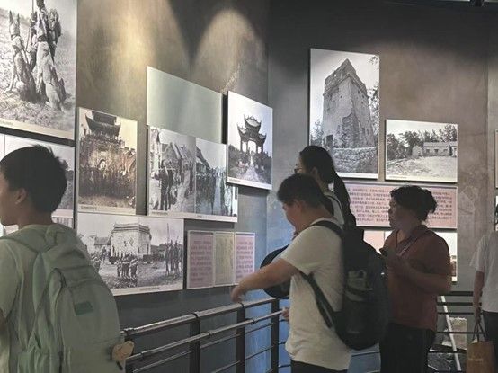 图为实践队员与学生一起参观抗战历史。 李文希 供图