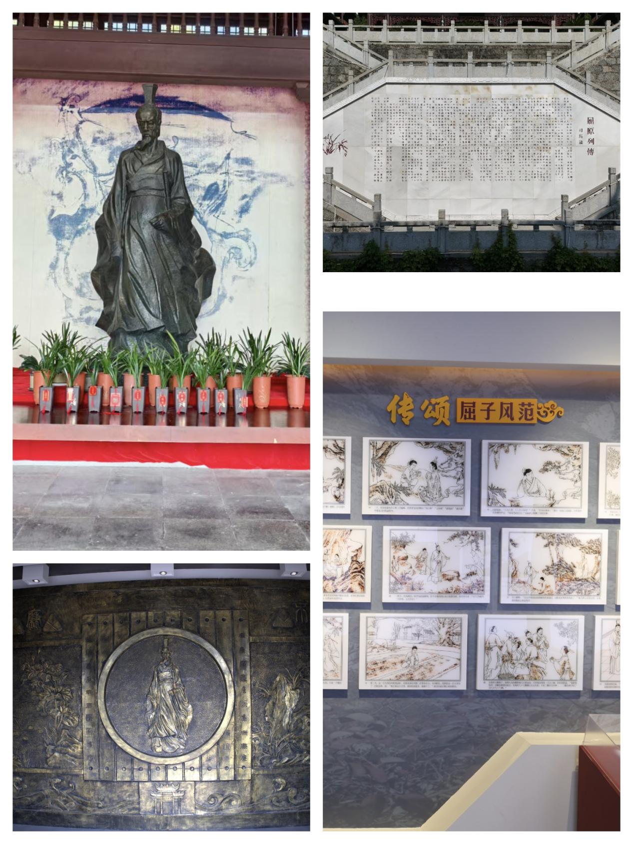 -楚祠中的屈原精神:调研团队在屈原祠通过《屈原列传》碑刻、屈原雕像、“传颂屈子风范”连环画展和主题浮雕等,直观感知到屈原精神。其不仅是诗句中的激昂,更融入民俗骨血,碑刻诉说生平与精神,雕像彰显忧国忧民品性,连环画展将人格魅力具象化,浮雕艺术化凝练精神内核。