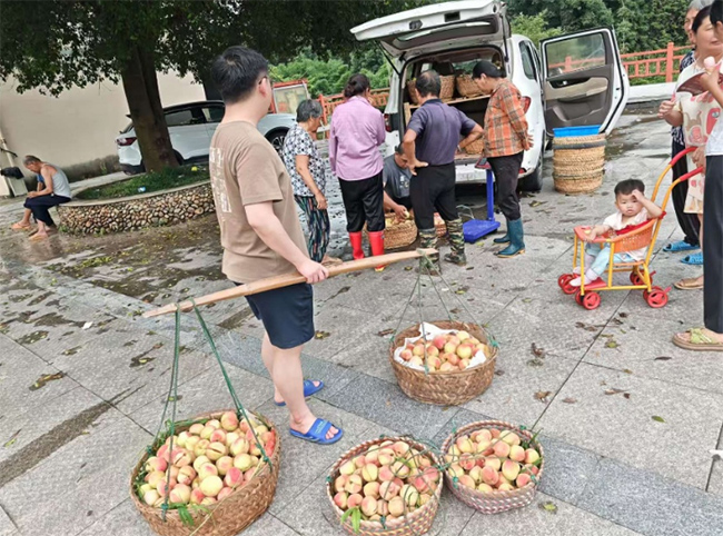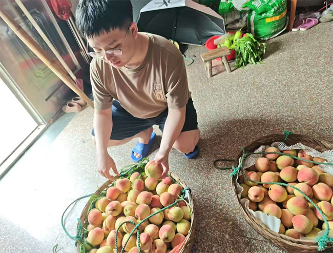 7月中旬至8月上旬是特色农产品穆阳水蜜桃的收获期,实践团成员来到村内协助村民筛选成色好的农产品进行装框,对成色不好的农产品分类,为村民出售农产品创收做了准备。