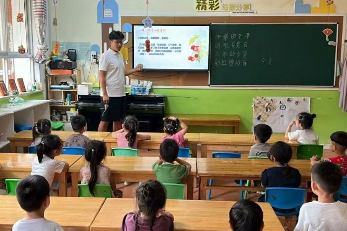 实践队来到枣庄明德幼儿园,以“奇妙中药大发现”为主题,带领孩子们认识生活中的中药“朋友”。圆润的莲子常伴粥饭,透明的蝉蜕来自树梢,毛茸的辛夷似小花帽,原来这些熟悉的物件竟是中药!队员江昊阳同学用趣味故事讲解了生活中常见中药的功效,红果山楂是揉散“吃撑皮球肚”的肠胃按摩师,金银花变作扑灭“喉咙小火苗”的灭火器,蝉蜕成为赶跑疹子的身体小管家。孩子们兴奋动手,将驱虫紫苏、安神白芷装入缝制好的香囊。有一个小朋友大声说要帮奶奶锁住膝盖的“风湿怪兽”,让小朋友在药香漫染间初识传统文化。