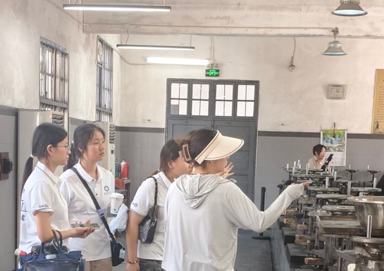 实践团先后赴徽州糕饼博物馆与徽菜博物馆开展饮食文化考察。在糕饼博物馆,团队系统学习徽州糕饼发展脉络,通过现代工艺与古法技术融合的展陈,理解了传统食品产业化路径;于徽菜博物馆,实践团成员沉浸式研究清末民初徽州茶馆文化形态,重点考察了非遗饮食展区,其中徽州豆干的制作技艺及臭鳜鱼发酵工艺特征成为实践团成员重点调研对象。此次考察深化了实践团成员对徽州饮食文化保护与创新实践的认识。