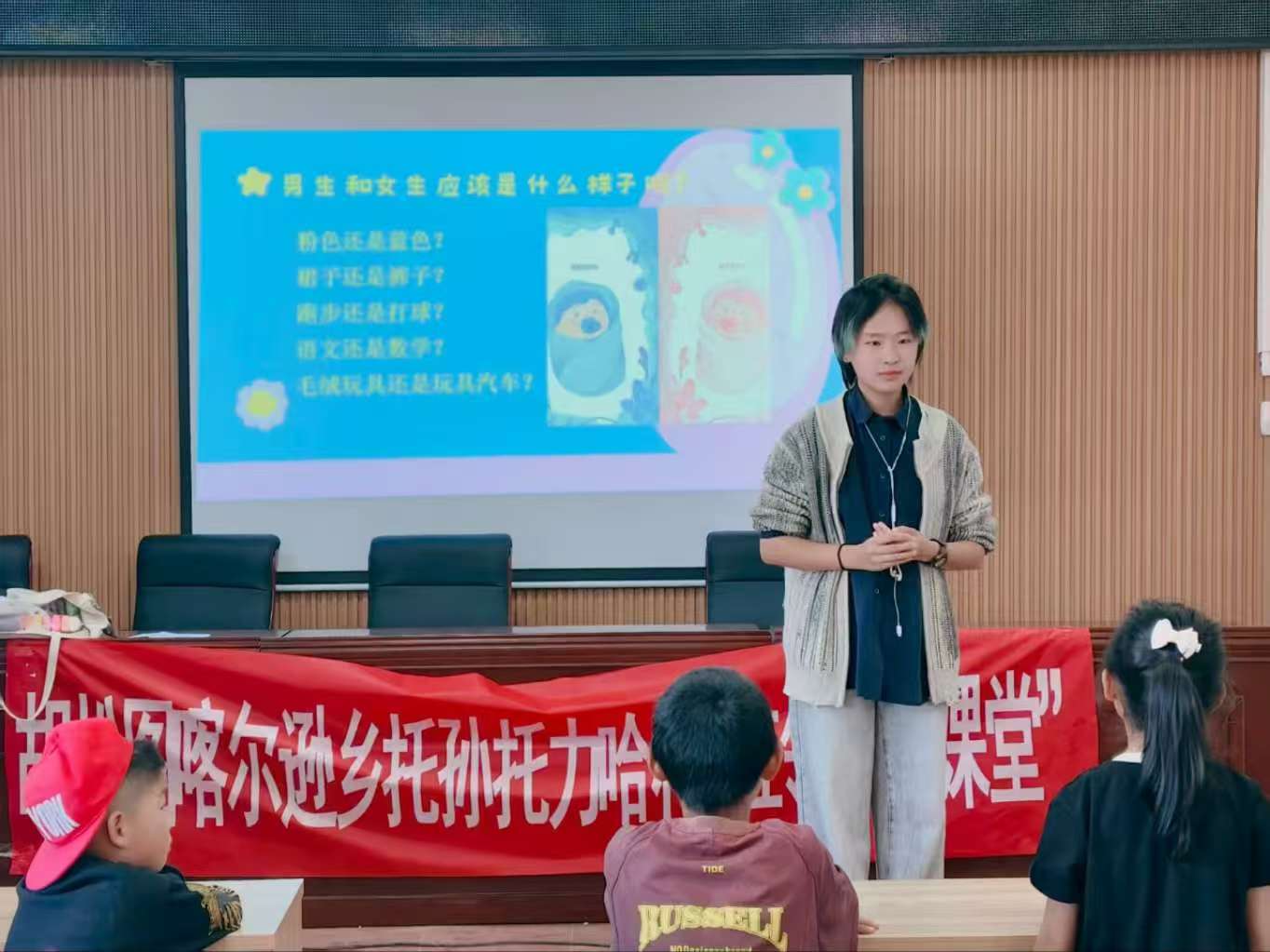 彩色的黏土在指尖翻飞,斑斓的性格画笔在纸上起舞,热烈的讨论在课堂回荡——近日,新疆昭苏县胡松图喀尔逊蒙古族乡的孩子们迎来了一堂打破常规的心灵成长课。中南大学56度中南昭苏支教团跨越山河,与孩子们一起打破性别刻板印象,探索独一无二的自己,在天山脚下,通过沉浸式体验教学,为乡村儿童开启自我探索之门,播撒自信自爱的种子。
