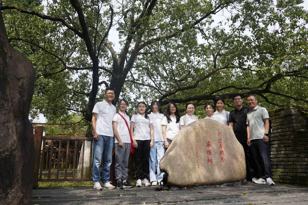 实践队来到了习近平同志亲植树处。1998年,“6.22”特大洪灾给光泽县人民生命财产及森林生态造成严重破坏。1999年3月25日,时任福建省委副书记的习近平同志代表省委、省政府,为灾后重建的原中央苏区光泽县送来深切关怀,并在止马镇杉岭兴隆峰北麓的杉关隘口亲手栽植一棵香樟树,激励当地干部群众重拾信心、重建家园。