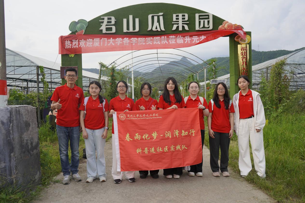 7月13日至18日,厦门大学“春雨化梦-润泽知行”科普进社区实践队在化学化工学院侯旭教授指导下、化学化工学院团委书记高世杰带领下,奔赴厦门大学对口帮扶的南平市光泽县,开展为期5天的暑期社会实践。实践队一行深入光泽县的乡村社区、学校企业和红色教育点,通过趣味化学科普实验、实地参访调研、组织座谈等多种方式,运用专业知识开展科技支农,引导学生关注乡村发展、投身乡村振兴。