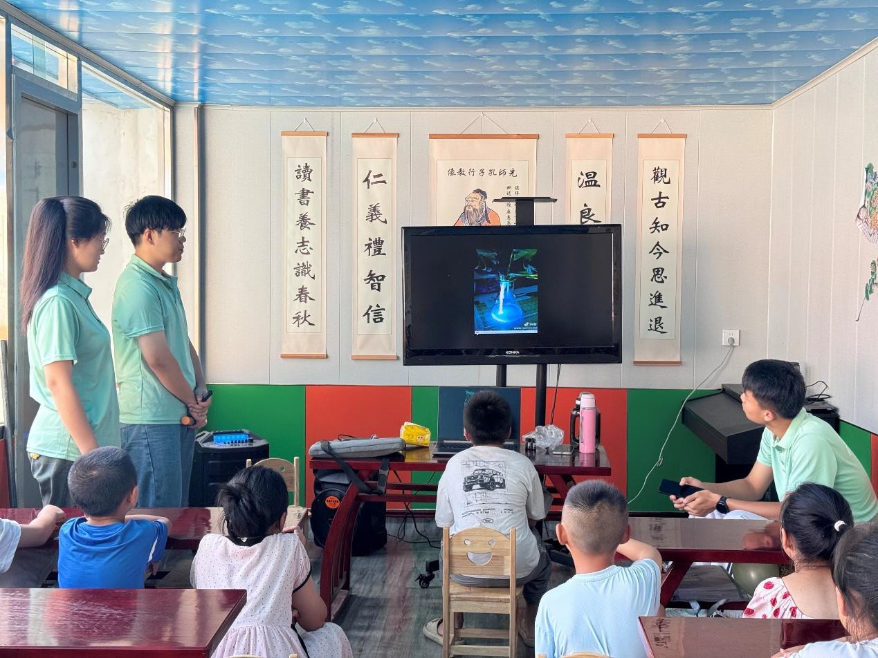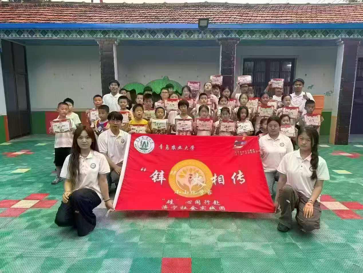 夏日传“薪”火,支教暖童心。为深入学习习近平总书记关于教育是强国建设、民族复兴之基的重要论述,并落实教育帮扶的相关政策,2025 年 8 月 2 日,“青岛农业大学‘锌’火相传小小化学家‘硅’心同行赴济宁社会实践团”赴山东省济宁市梁山县西大屯村为当地孩子们开展一场时长 10 天的支教课程。实践团队由六名大学生组成,围绕化学科普、趣味试验、安全教育、家乡文化等开展系列支教课程,凝聚青年力量,推动乡村教育走向美好发展,焕发蓬勃生机。