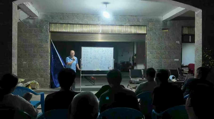 下午,实践队成员们准时开启了抖音直播线上教学活动。他们凭借精心准备的教学内容和丰富多样的教学方法,通过网络直播的形式,为安山村的村民们以及关注此次活动的网友们带来了一堂精彩的普通话课程。直播过程中,成员们与观众积极互动,耐心解答疑问,赢得了众多好评。直播教学结束后,实践队成员们并没有休息,而是再次巡村,进一步通知村民们晚上的线下普通话教学及游戏活动。他们希望通过这种反复通知的方式,能够让更多的村民参与到晚上的活动中来,提高普通话学习的积极性和参与度。