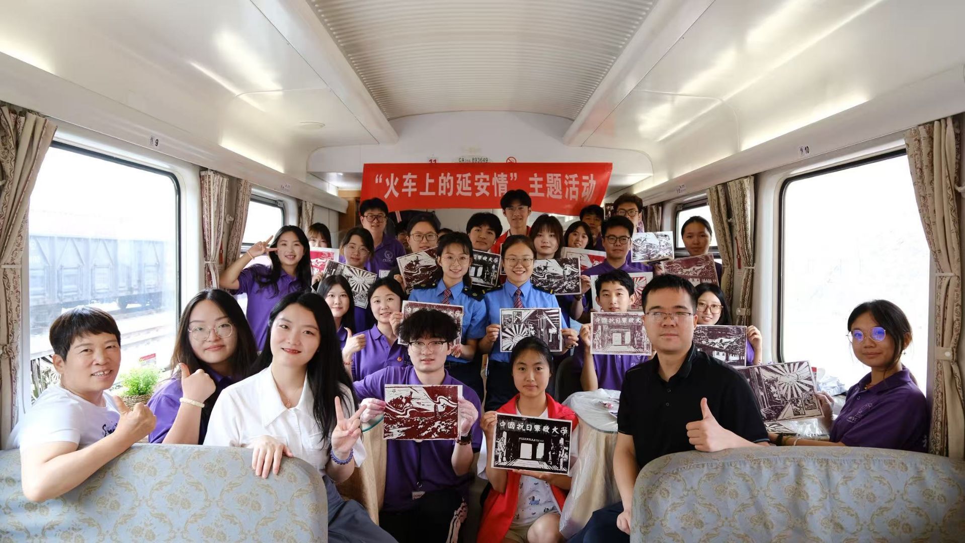 7月8日,实践团队从西安市出发,奔赴延安市。在火车上,实践团成员与西安理工大学 “青马工程” 团队共同参与了 “火车上的延安情” 主题活动。大家围坐在一起,交流对延安精神的理解,共同感悟延安精神跨越时空的强大力量,深刻认识到其作为习近平新时代中国特色社会主义思想历史根基的重要意义。