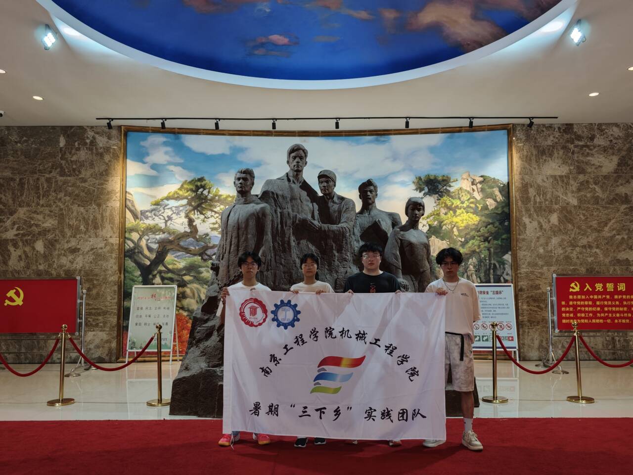 为深切缅怀革命先烈的丰功伟绩,扎实推进党史学习教育走深走实,2025年8月22日,南京工程学院暑期“三下乡”实践团一行前往江苏省扬州市革命烈士陵园,开展了以“缅怀英烈筑忠魂,传承红色树新风”为主题的“三下乡”社会实践活动。在此,队员们接受了一次深刻的党性教育和精神洗礼。 清晨的扬州革命烈士陵园,松柏苍翠,静穆庄严。高耸入云的烈士纪念碑宛如一把利剑,直指历史的天空,也叩击着每一位实践队员的心门。伴随着低沉而雄壮的《献花曲》,两名队员手拿花圈,缓步走向纪念碑基座,步伐沉稳,神情肃然。花圈上“革命烈士永垂不朽”的字样,在阳光下显得格外醒目。