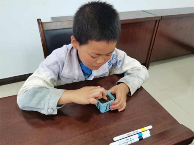 (图为学生在播种)