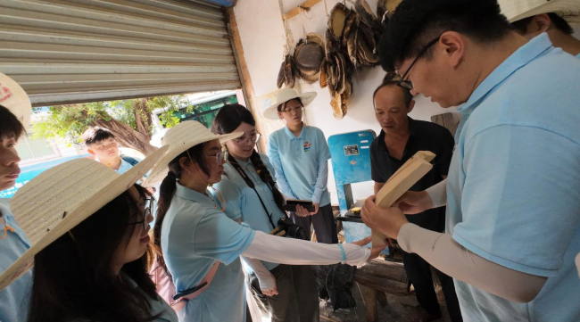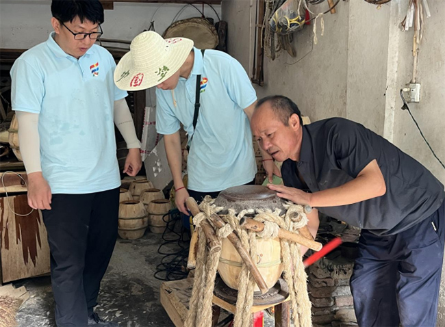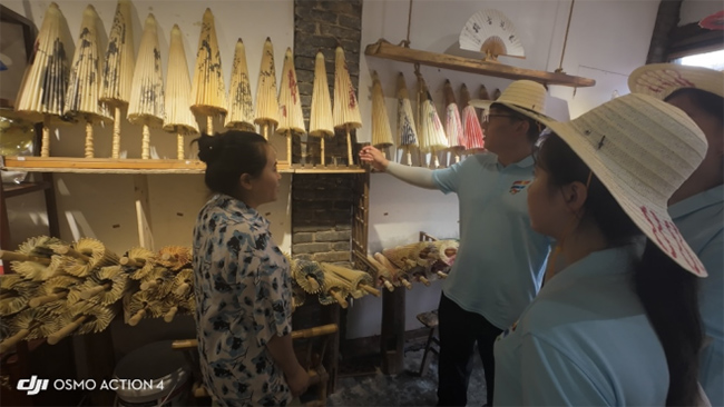 涂疆蜀为实践团成员讲解油纸伞工艺。汤祺 供图