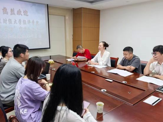 图为“一皖茶油”实践队与金寨县经济开发区团工委相关负责人研讨