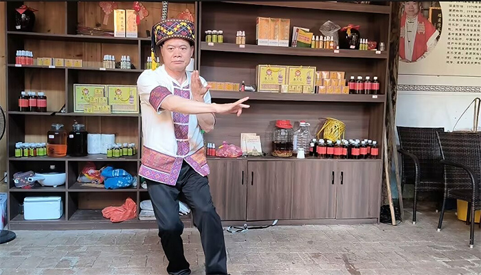 访谈结束后,张冬洋老师现场给团队展示了盘王武术。刚劲有力的招式与行云流水的身法相得益彰,将武术攻防技巧与瑶族文化完美融合,兼具文化仪式感。精彩表演引得队员们连连赞叹,也让大家直观感受到这一非遗技艺的独特魅力。
