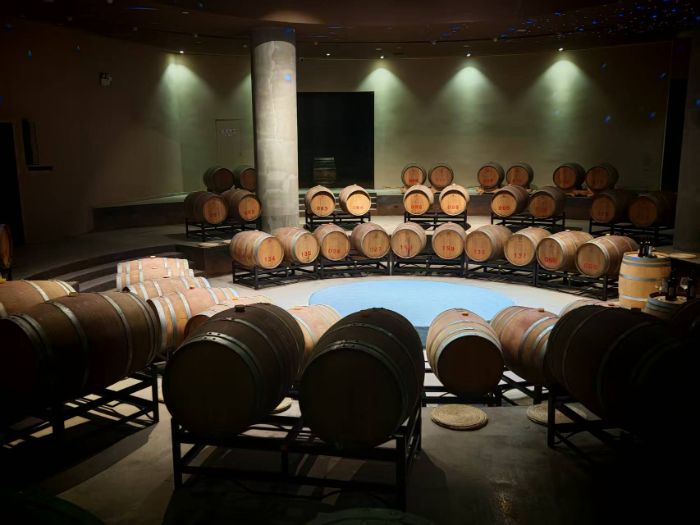 图片三 酒庄的灌装车间 地下酒窖是影响葡萄酒口感的关键地区,这里常年恒温恒湿,7千平方米的空间里整齐排列着2千余个法国橡木桶,不同企业定制的葡萄酒在此沉淀、升华。同时,它也作为国礼出现在众多国际交流活动中,提升了品牌影响力。