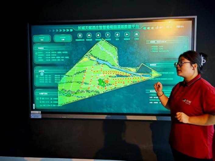 图片一 队员到达酒庄其中,最令人印象深刻的是酒庄中的智能监测技术,它借助物联网,用传感器采集气象(温度、湿度、风速等 )、土壤(湿度、养分 )等数据,经无线传输至平台。平台通过AI分析,呈现种植、水源、气象等信息,在异常(如极端天气 )时预警,助力精准调控灌溉施肥,科学应对极端天气,提升葡萄品质与管理效率,推动经验管理向数据驱动转型,长城天赋作为宁夏唯一一个拥有智能化调控平台的酒庄,实现了从传统的经验管理转向数据驱动的科学管理,极大提高了酒庄的竞争力。