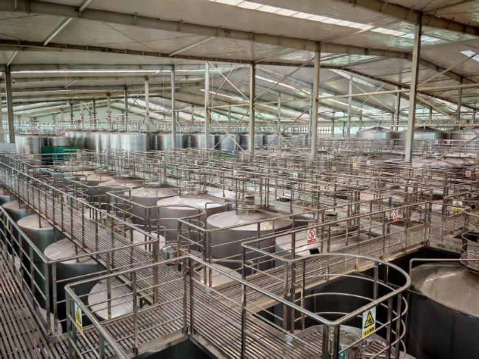图片二 酒庄的检测平台随后,队员来到了酒庄的加工车间。车间采用精准循环等高端酿造理念,并引进了现代化酿造设备,产能达2万吨,灌装能力每小时1万瓶。在这里,葡萄从采摘到酿成美酒的每一个环节都被严格把控,先进的设备与精湛的工艺确保了葡萄酒的卓越品质。