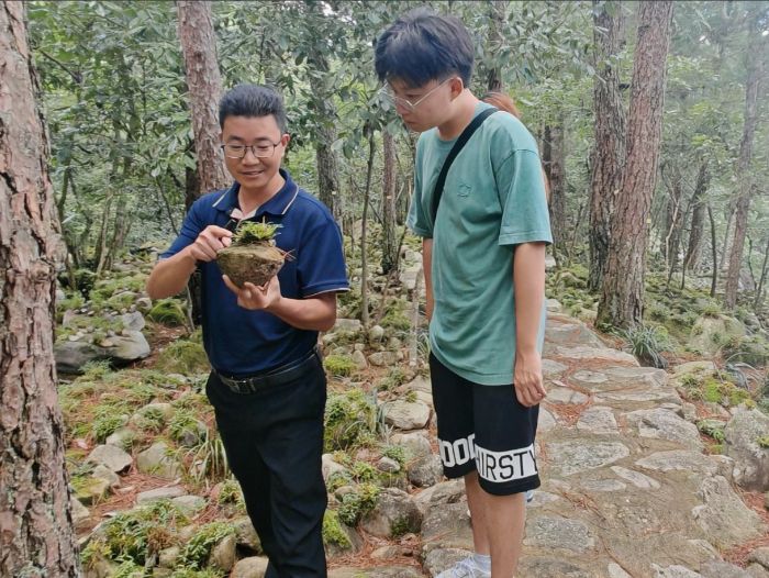 (图为团队成员近距离观察石斛的生长状态朱雨轩供图)