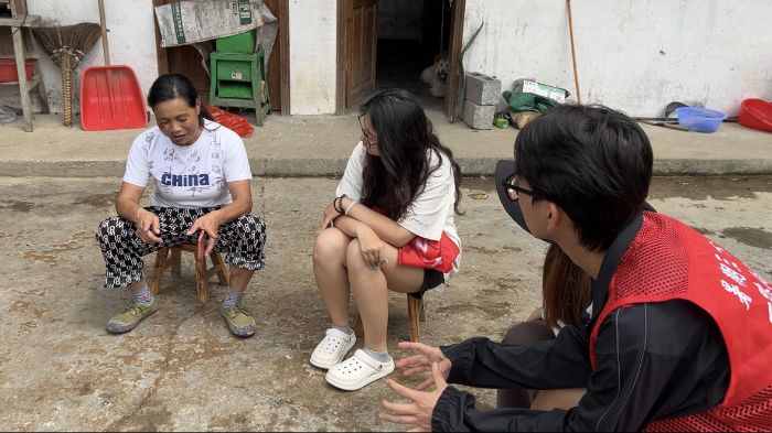 忙完茶园的活计,队员们又护送腿脚不便的村民杨奶奶回家。木门槛被岁月磨得发亮,奶奶一迈进去就打开话匣子:墙角那口黑釉陶罐是上世纪合作社分茶油用的,梁上挂的竹筛是老伴亲手编的,如今成了晾晒夏茶的“传家宝”。队员们一边听,一边把散落在地的柴禾码成垛,把积灰的条案擦得能照出人影。扫完地,男生们还合力把沉重的水缸挪到阳光处,让奶奶不用再弯腰舀水。临走时,奶奶把刚蒸好的红薯塞进大家手里,热气混着甜香,像极了德旺人滚烫而质朴的心。