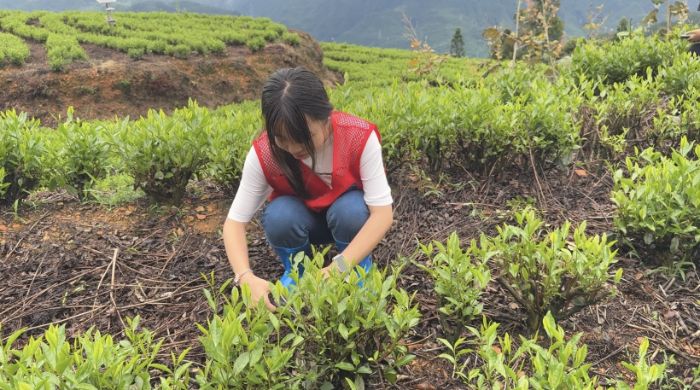 在贵州江口县德旺土家族苗族乡的茶园里,一场夏雨刚刚停歇,湿润的泥土松软而富有弹性,踩下去会留下浅浅的脚印,稍不留神便带起半裤泥点。可身着红色志愿背心的青年们无暇顾及,他们分散在一垄垄青翠欲滴的茶树间,像跳动的火焰点亮了整片山坡。有人蹲下身,指尖轻拨嫩叶,仔细比对叶脉色泽,记录生长数据;有人挥动锄头,连根拔除侵占养分的杂草,再顺手把翻出的蚯蚓送回土壤;有人干脆双膝跪地,用掌心压实苗根周围的浮土,动作轻柔得像在安抚熟睡的婴儿。