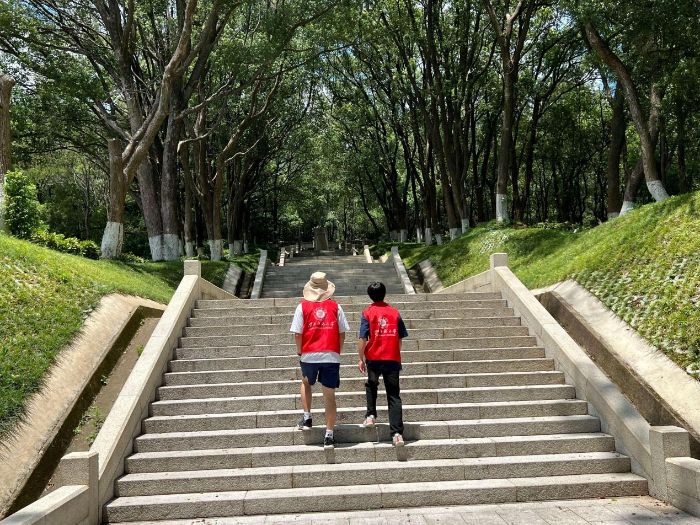 10时许,团队成员走向烈士纪念碑。157级台阶被烈日晒得发烫,队长张子恒提醒:前面还有11层主陵台阶,大家调整呼吸,聆听历史的声音。方志敏烈士陵园的11层台阶象征着方志敏为共产主义奋斗的11个春秋,即从他投身革命到牺牲的漫长历程,每层台阶代表方志敏为革命奋斗的一个春秋,而每级台阶则对应他在赣东北特区苏维埃政府担任主席至牺牲时的1570个日日夜夜。这种设计通过数字的叠加,凸显了方志敏为革命事业奉献的坚定信念和漫长岁月。