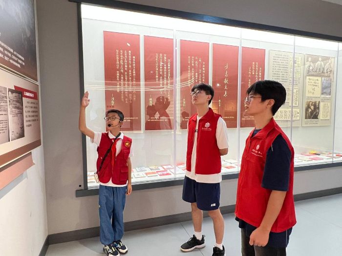图为团队成员与红领巾讲解员的合照(数学与统计学院张子恒供图)