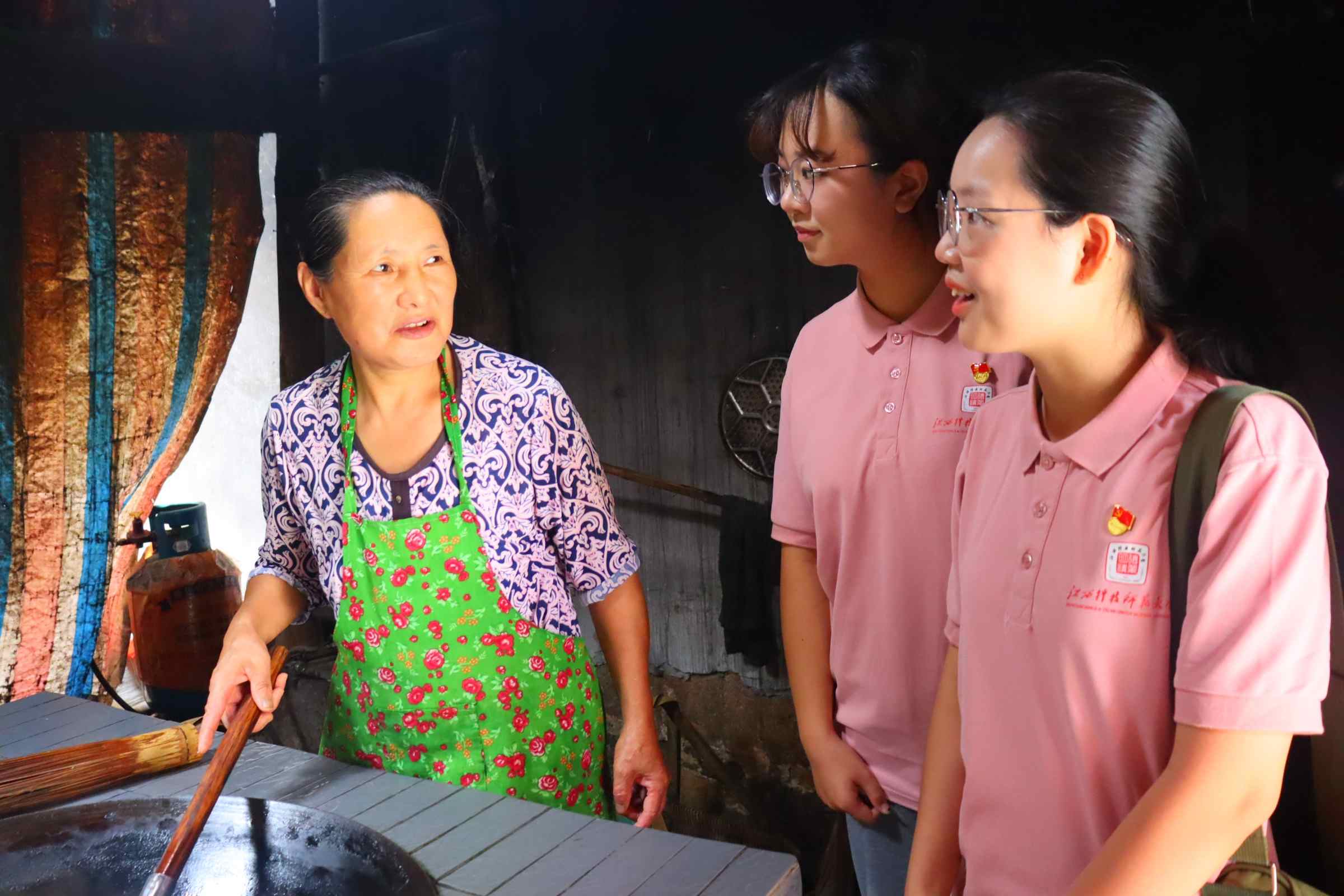 灶火正旺,油香扑鼻。团队来到“全国脱贫攻坚先进个人”彭夏英家中,她正为自家农家乐备菜炸油渣。队员们听她讲述村庄的变迁:“路宽了、游客多了,咱农民的腰包更鼓了!”朴实的话语道出了神山村翻天覆地的变化。团队成员还亲切慰问了她年近百岁的母亲,关心老人的日常生活和身体状况。
