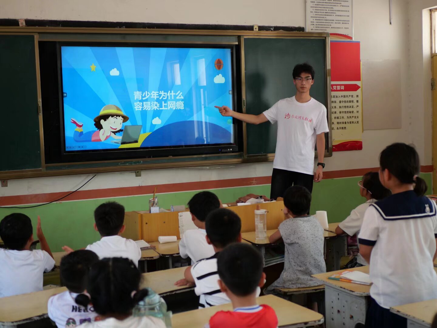 针对兰考夏季高温多雨、河渠坑塘水量充沛,且正值农忙时节部分家长监护可能疏漏的特点,团队成员夏浩越为孩子们带来了一场极具针对性的防溺水主题宣讲课。深入剖析了本地黄河故道与灌溉沟渠等潜在危险水域的特点,结合触目惊心的真实案例,用孩子们听得懂、记得住的语言,清晰讲解了“六不两会”的核心要求。夏浩越不仅传授了如何识别危险与科学呼救,如何利用漂浮物自救等实用技能,更引导孩子们认识到保护自身生命安全不仅是技能,更是法律赋予的权利和责任。课堂互动热烈,孩子们的安全意识与自我保护能力在夏浩越生动而深刻的讲解中得到了显著提升,为守护兰考少年儿童平安度夏牢牢织密了一道认知与行动并重的安全网。