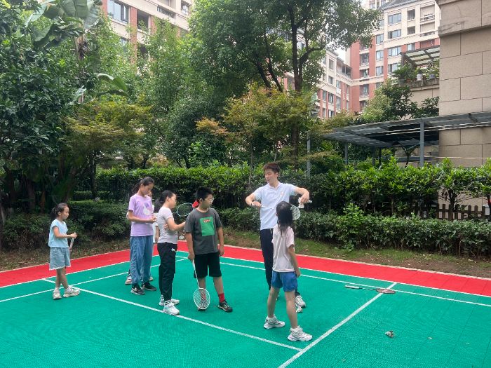 活动后期,志愿者重点开展成果巩固与拓展,确保学习效果长效留存。各项目通过反复练习强化动作连贯性与稳定性,武术课上孩子们能完整连贯完成五步拳与少年拳片段,篮球、乒乓球、羽毛球课组织小型模拟对抗,让孩子在实战中灵活运用所学;同时,志愿者根据孩子反馈调整教学强度,针对部分孩子步型不稳、发力不连贯等问题开展一对一辅导,确保每个孩子都能跟上进度。即便期间遭遇骤雨,志愿者也迅速将课堂转移至屋檐下或社区活动室,始终保障教学不中断。
