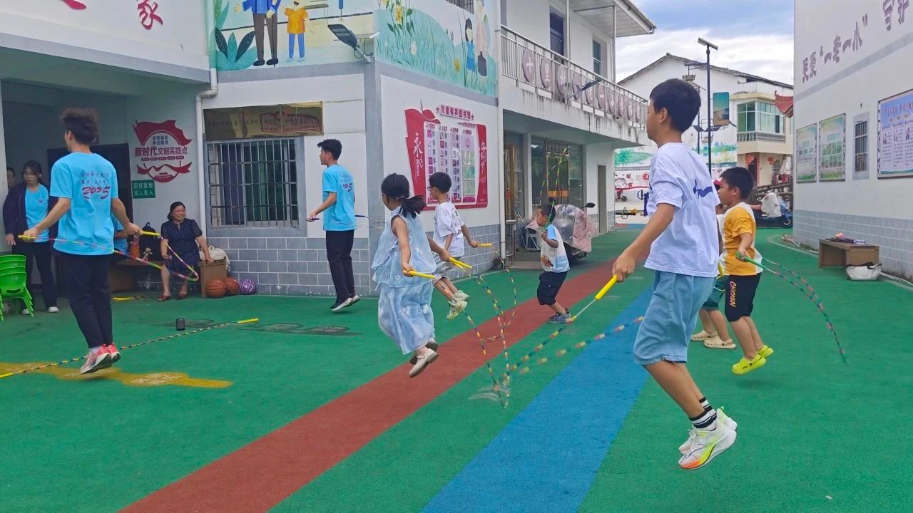 在十里村童伴之家,小朋友一大早便到教学点等待队员们的到来,汇报演出过程中,孩子们在实践队员带领下自信展示了花样跳绳项目,双脚跳、交叉跳、前后跳,动作虽简单但充满童趣;篮球技能展示中,从生涩到流畅的运球、精准的传球配合,赢得现场家长阵阵喝彩。汇报尾声,孩子们用清澈纯真的歌声表达了对实践队员的感谢与不舍,纯真的笑脸与队员们充满成就的目光交织,洋溢着汗水浇灌出的成长喜悦与浓浓情谊。