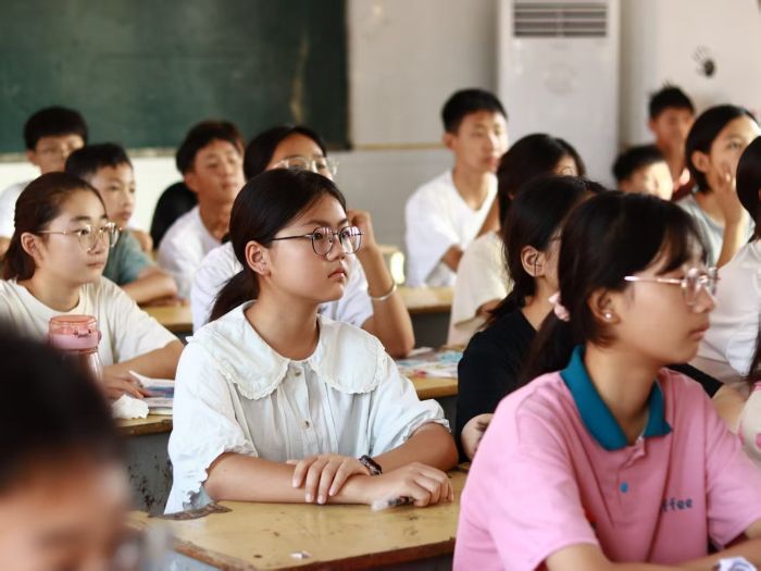 图为方集镇中心学校学生认真听课。程陶蓉 摄
