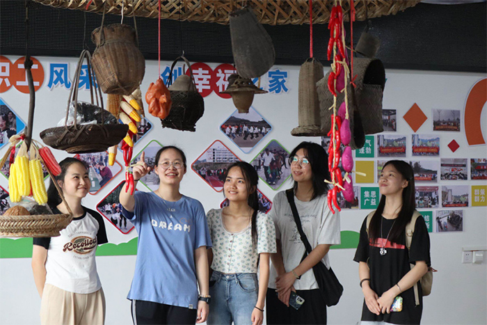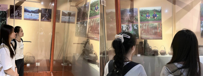 结束了同文化馆工作人员的对话,团队成员来到了三江侗族博物馆。在博物馆的参观游览过程之中,团队成员看到了古时三江人民采茶的竹篓、煮茶的铜壶、打茶的工具等文物。这些拥有历史痕迹以及尘土的物件,无不向团队成员展示着三江侗族自治县拥有着天然的种茶条件。三江人民在这片土地上世世代代地种茶、泡茶、打茶,传承下来悠久的“吃茶”历史,表现出三江人民对于油茶的钟爱情感。