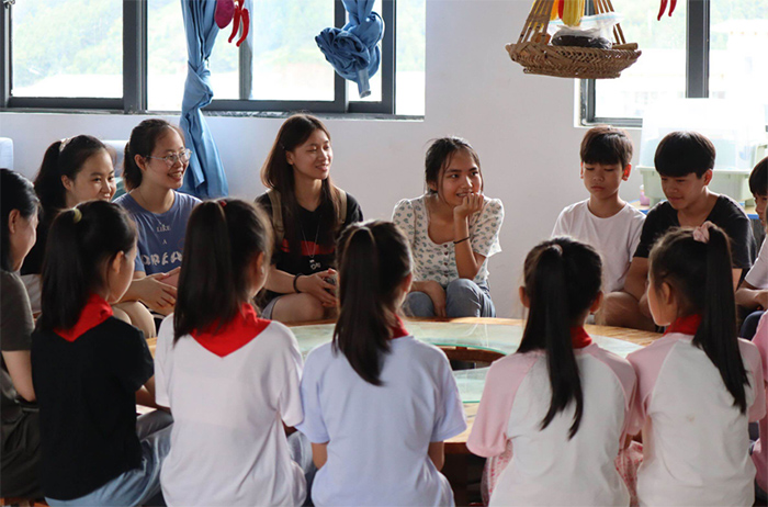 次日调研旅程,团队成员来到了三江侗族自治县古宜镇江川小学,在校长李晓雪老师的带领下,团队成员深刻感知到了三江打油茶融于学校教育的浓郁氛围。在与李晓雪老师的对话中,她向团队成员说道:“三江打油茶在三江人民的日常生活之中占有重要地位,是三江人民生活中不可缺少的日常食品。三江打油茶虽然在我们的生活之中很平常,但并不平庸,包含着独特的民族文化。在学校平时开展的打油茶活动中,我们也会将三江打油茶之中的文化内涵教授给孩子们,让他们不仅会吃油茶,还会体味打油茶其中的侗族文化。”结束采访后,团队成员同江川小学的老师同学们在学校独特的油茶活动室一起围着火塘,探讨三江打油茶。在对话之中,小学的孩子们告诉成员们自己参与“百家宴”活动之中打油茶项目的愉快心情,以及自己在平常日子里吃油茶的美味搭,同时也让团队成员了解到了油茶“先苦后甜”的吃茶顺序以及独特的人生道理。在江川小学的旅程中,团队成员见识到三江打油茶深入三江人民生活程度之深,也了解到三江打油茶融入国民教育的新需求以及方向。