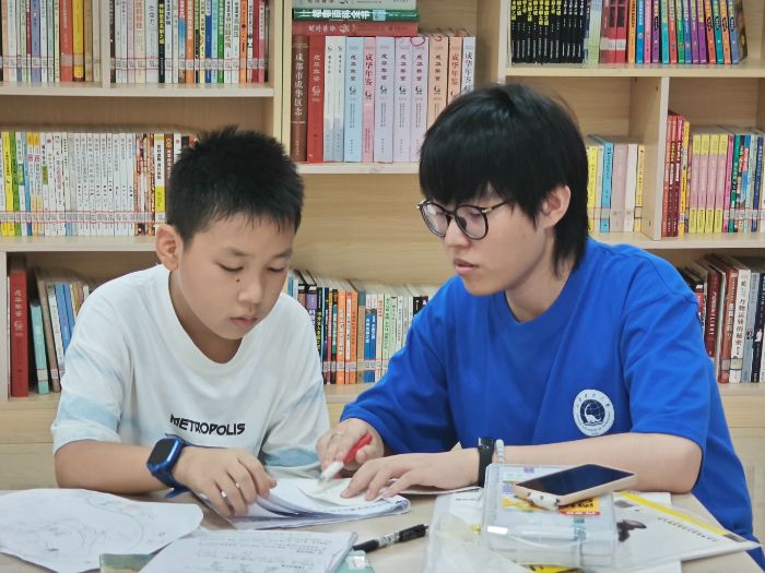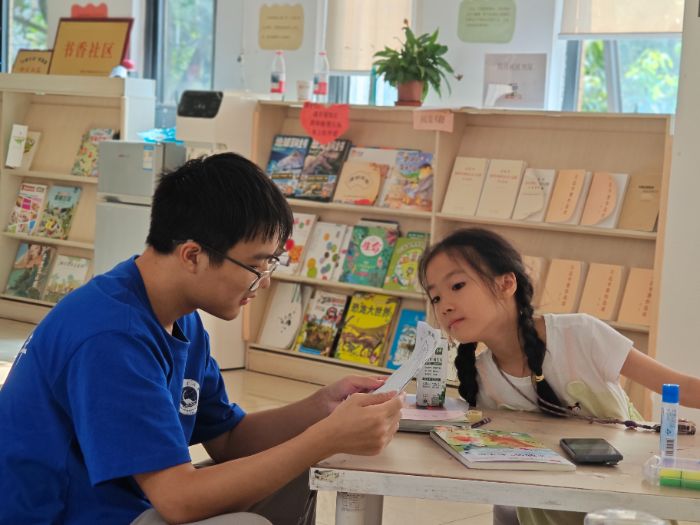 首日活动聚焦“社交培育”与“心理呵护”。团队先引导小朋友制作个性名牌并进行自我介绍,用趣味方式打破陌生感,快速拉近彼此距离。随后,“开心传话”“表情接力赛”等分组游戏相继开展,孩子们在协作互动与轻度竞争中,逐步提升社交表达能力与团队协作意识。午后,队员化身“专属辅导老师”,针对暑期作业中的数学计算、语文阅读等难题耐心讲解,助力孩子们高效完成学习任务,用实际行动为成长添力。