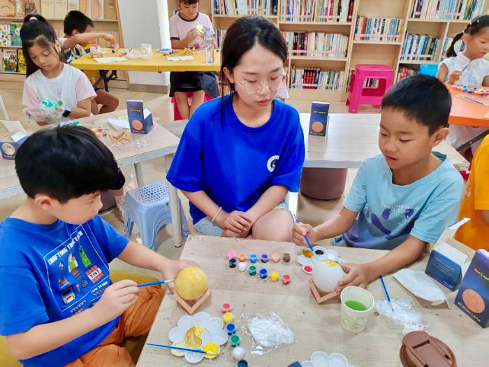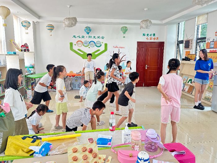 次日活动以“体能锻炼+知识汲取”双线推进。开场的“地震趣味科普”环节中,队员先讲解基础地震知识,再指导小朋友用粘土制作简易地球结构模型,让地球圈层知识更直观;随后通过有奖竞答加深地震避险记忆,还带领孩子们组装简易地震探测仪,在动手操作中感受科学魅力。紧接着的天文科普,借助图文与短视频,解答孩子们对宇宙的好奇。之后,“默契运球接力赛”、“身体拼图乐”等体育游戏上线,帮助小朋友在运动中增强体质。午后的作业辅导环节,队员针对数学难题、英语单词等问题细致讲解,切实解决学习困惑;活动尾声,孩子们用画笔勾勒心中星空,上台分享创作思路,进一步锻炼表达能力。