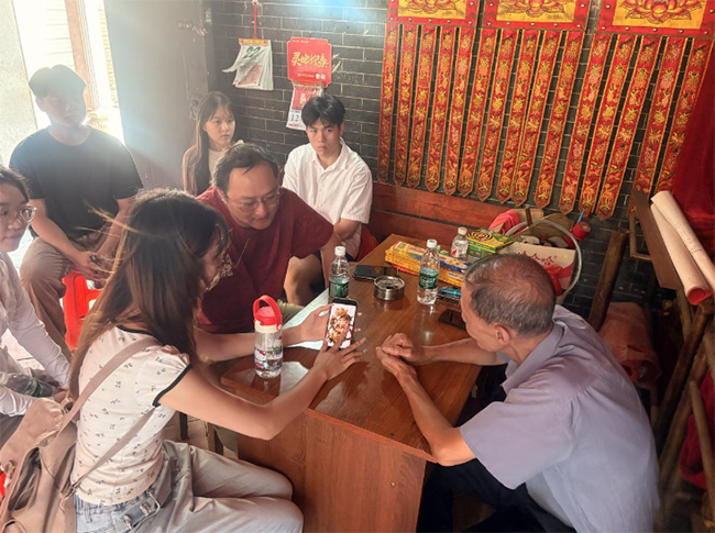 二、次日:团队走访商户,问民俗对经营影响 8月22日,“捞乜都掂队”将调研重心转向关帝侯王出游民俗相关的周边商户。当天上午,团队成员分成多个小组,沿着关帝侯王出游的传统路线,先后走访了餐饮、零售、住宿等不同类型的商户。访谈中,团队成员细致询问过去一年关帝侯王出游仪式举办时,商户的客流量、营业额变化,以及在服务游客过程中遇到的问题;同时重点关注今年仪式相较于去年的改进之处,从活动流程优化、宣传推广方式、游客参与度等方面展开深入了解,收集商户对仪式进一步完善的具体建议。