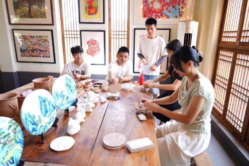抵达前锋村后,实践团将非遗文化传承作为重点工作,通过“理论+实践”的方式深入挖掘当地文化资源。团队邀请泥塑、“花帽子”等非遗技艺传承人开展专题教学,传承人结合前锋村本土民俗故事,系统讲解泥塑的历史渊源,队员们在传承人的指导下分组参与泥塑创作,体验佩戴“花帽子”并拍摄记录,在实践中体会传统技艺“慢工出细活”的匠心精神,深刻理解非遗作为乡村文化“活化石”的价值,还围绕“如何让非遗贴合现代审美、吸引年轻群体”与传承人交换想法,为非遗活态传承提供青年视角。