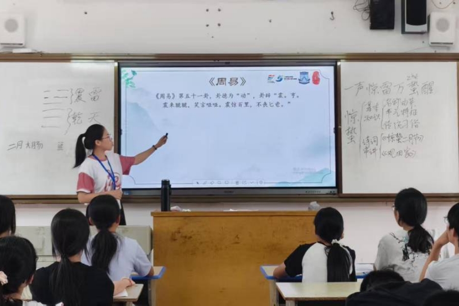 主讲人罗颖借助生动的日照图片,以知识问答引出本节课的主角——夏至,紧接着带领学生们以古人的方式打开夏至,通过一幅幅古画和一首首古诗词,了解夏至三侯与传统习俗,感悟夏至万物蓬勃生长的旺盛生命力。随后结合人自身的特点,介绍夏至的哲理,让学生明白人生的夏季是关键的“拔节孕穗期”,持续的行动比瞬间的爆发更具意义,鼓励学生持续努力奋斗。