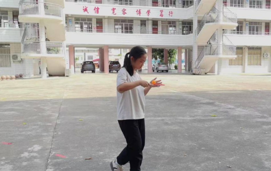 “平衡之术”项目则是对传统平衡游戏的创新升级。参赛者需要单手持乒乓球拍,将乒乓球稳稳置于拍面上,然后沿着地面上用红色胶带标记的蜿蜒路线往返行走。这个项目不仅要求学生保持高度专注,更需要在移动中不断调整身体重心。许多学生在完成挑战后表示,这个游戏让他们深刻体会到古人“执盈守虚”的生活智慧,也明白了“欲速则不达”的深刻道理。