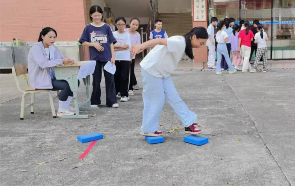 “国风拾萃之旅”以创新传统游戏为核心亮点。在“摸石过河”项目区,参赛学生需要巧妙运用三块“道具砖”作为垫脚石,在10米长的赛道上完成“渡河”挑战。活动现场,学生们或蹲或立,小心翼翼地移动着脚下的“石头”,既要保持身体平衡,又要合理规划每一步的落点。每当有选手不慎“落水”,场边就会爆发出善意的笑声和鼓励的掌声。这个源自古代劳动智慧的游戏,经过现代化改造后,既考验了学生的身体协调能力,又培养了他们的策略思维。