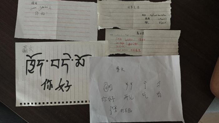 活动中,志愿者通过图片、实物卡片和动画短片,生动讲解了蒙古文、藏文、维吾尔文等多种少数民族文字的起源、书写特点及文化内涵,并现场演示了藏文竖写、蒙古文连笔等独特书写方式。孩子们认真聆听,积极模仿,表现出浓厚兴趣。在互动环节,志愿者指导孩子们用彩笔临摹“爱”“团结”等少数民族文字符号,并通过“文字配对”游戏加深对文字含义的理解,现场气氛热烈。